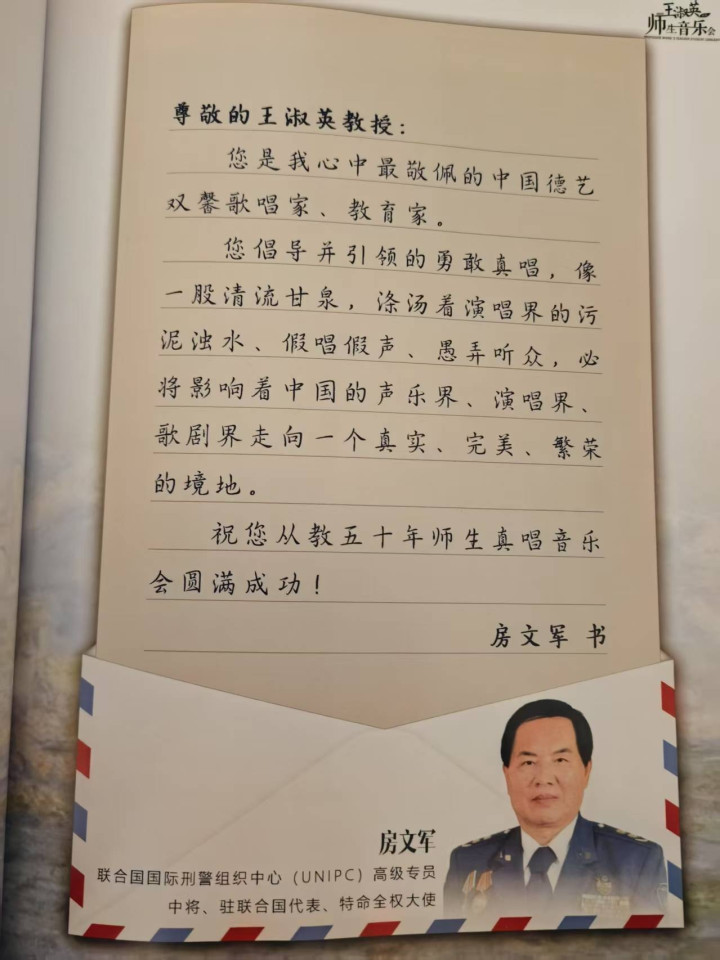 2025年4月5日下午,著名女高音歌唱家、教育家、声乐家、中国人民解放军艺术学院声乐教授王淑英师生音乐会新闻发布会在北京世纪金源大饭店举行,联合国国际刑警组织中心(UNIPC)高级专员、驻联合国代表、特命全权大使房文军中将应邀和来自国内外的近百名嘉宾及几十家新闻媒体参加了本次新闻发布会。
